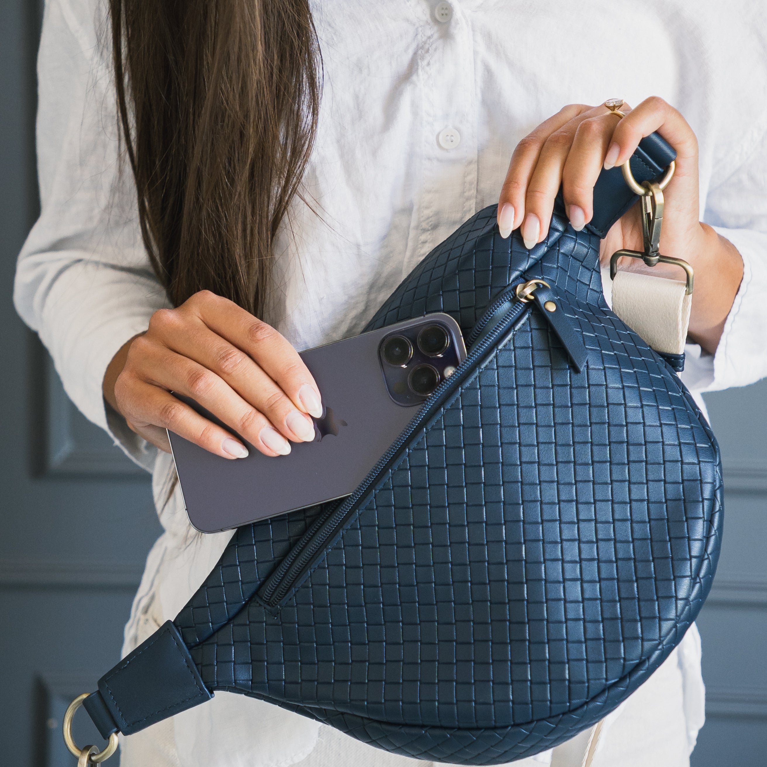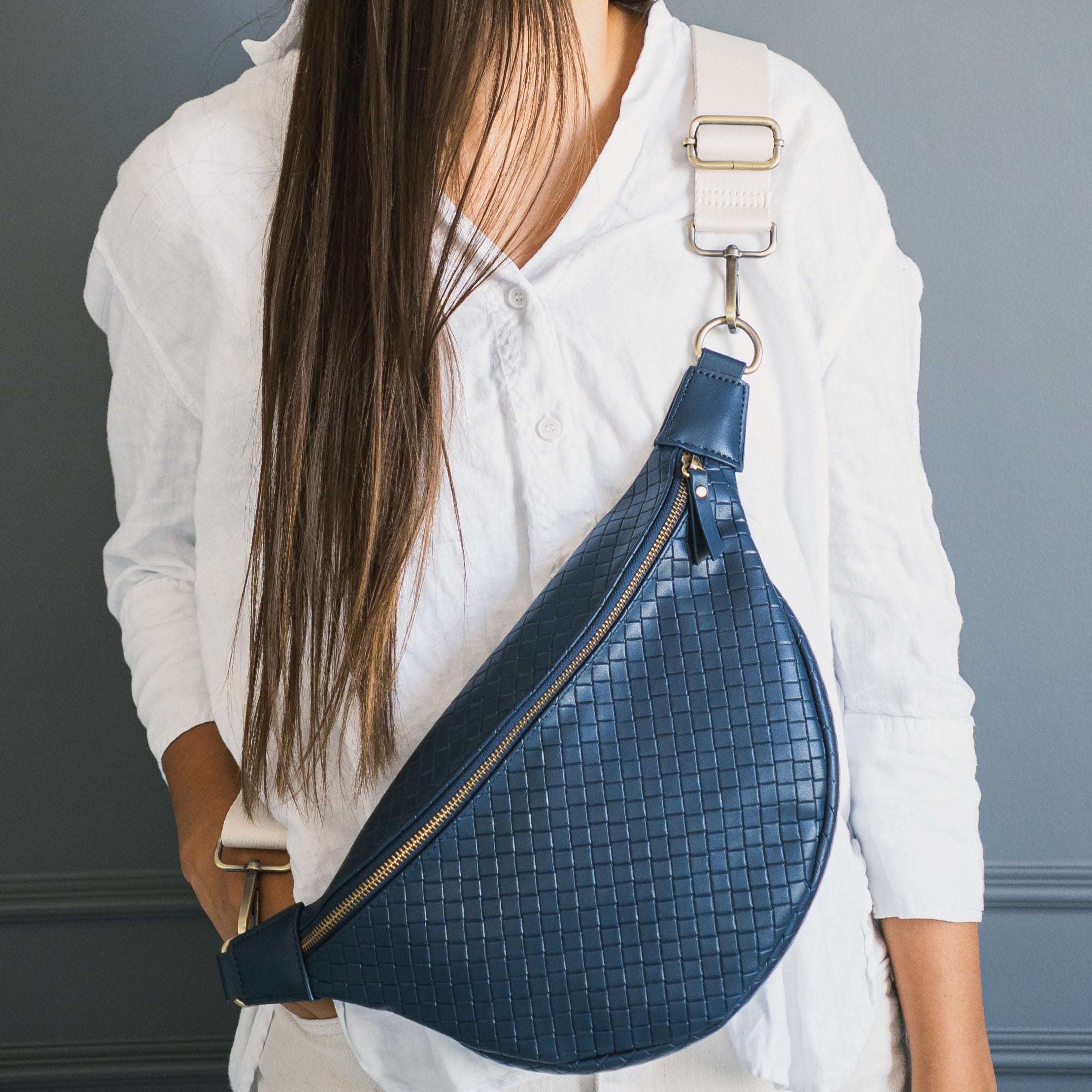 NAVY W/ BRASS HARDWARE