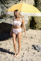 Mia High Rise Bottoms | Rose Pink & White Floral Modest High Waisted Bikini