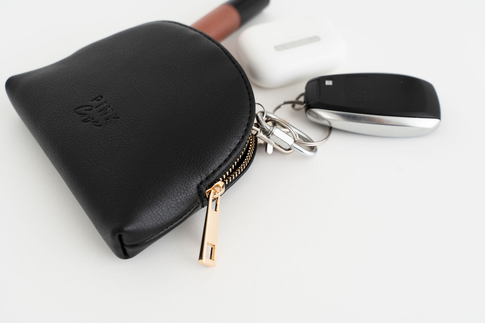 Introducing the Ava Pouch with elegant gold hardware, the perfect accessory to use with any of our bags. Crafted with attention to detail, this stylish pouch is made from high-quality Vegan Leather for durability and timeless appeal. The Ava Pouch is designed to hold your essentials with ease. Stay stylish and organized with the Ava Pouch, the perfect addition to your accessory collection.